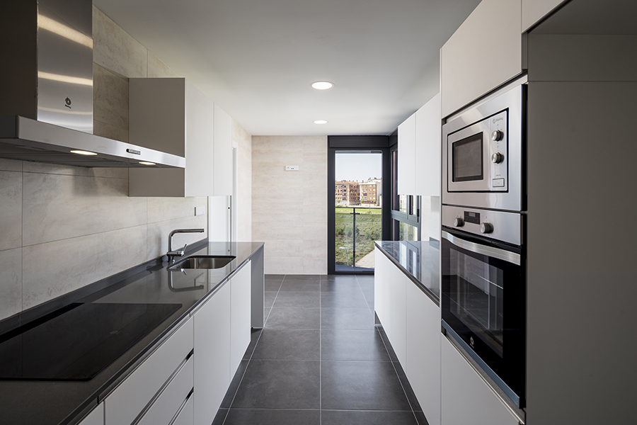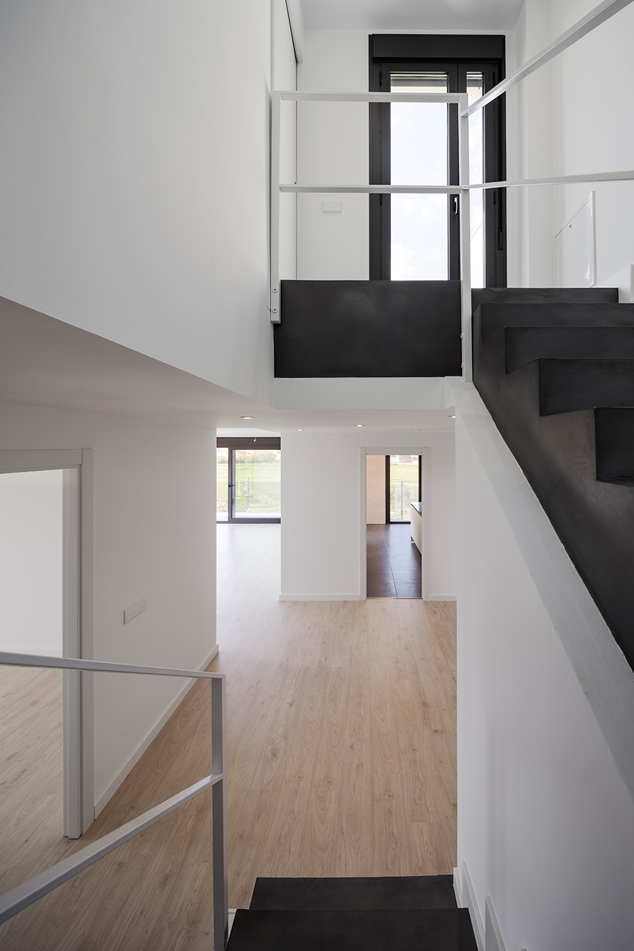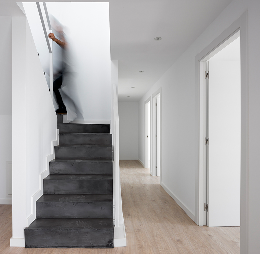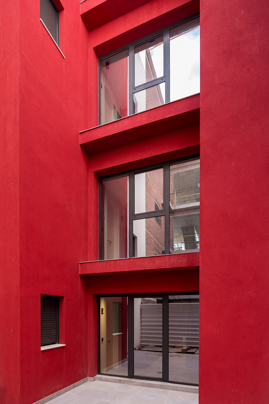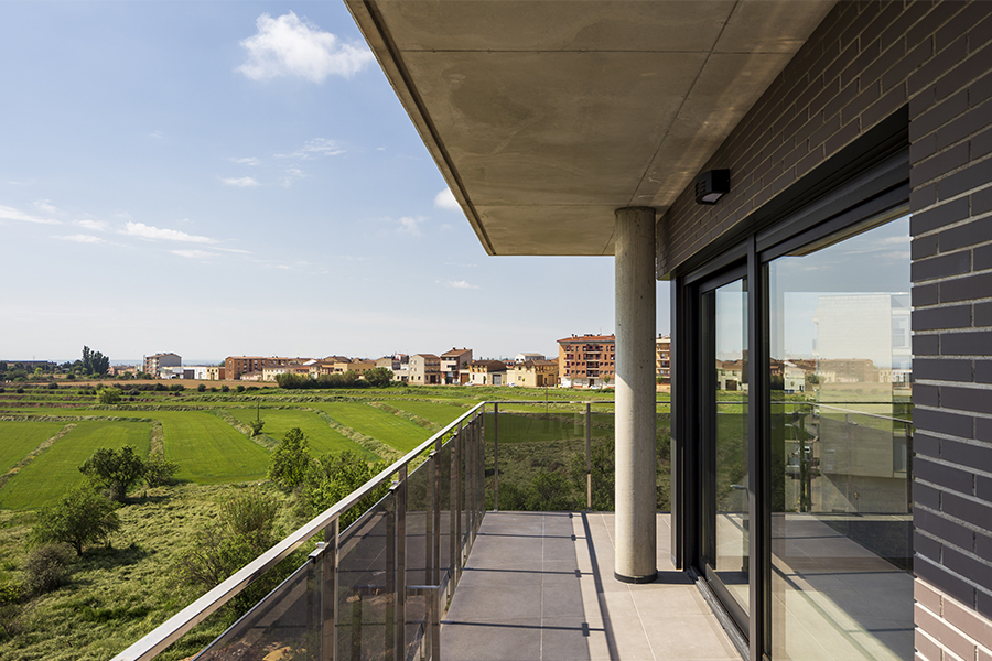El principal inconveniente en este tipo de propuestas es solventar la ventilación de las viviendas de manera adecuada sin menoscabar la percepción, del que habita en ellas, de viviendas totalmente exteriores. Para ello, se aprovecha la geometría de la parcela desfasando ambas pastillas, este gesto permite maximizar la longitud de las viviendas y facilita el vaciado del centro de la edificación, de manera que se genera un patio de grandes dimensiones para la ventilación cruzada de las viviendas.
